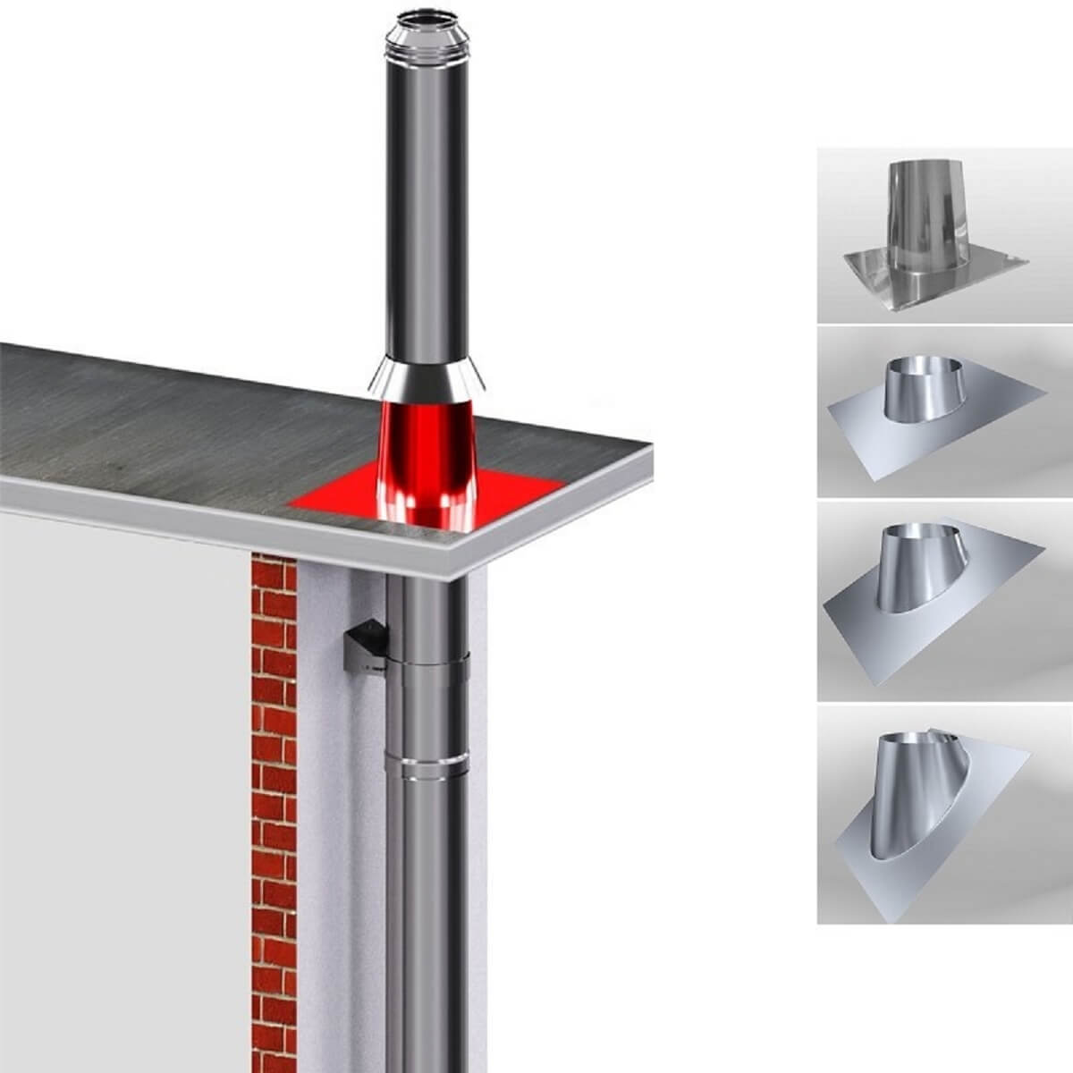 Mit der Dachdurchführung wird der Edelstahlschornstein durch die Dachhaut geführt. Sie wird für Flachdächer und Dächer mit einer Neigung von 5° bis 50° eingesetzt.