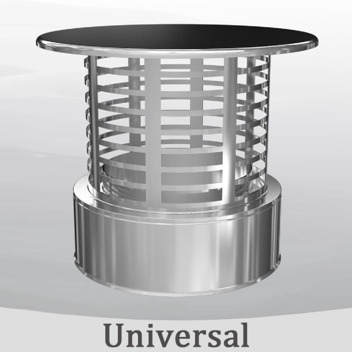 Ein Wetterschutz für alle Schornsteine, auch für Leichtbauschornsteine, sofern es sich um einen Innenschornstein handelt, der bei einer Schornsteinsanierung nachgerüstet wurde. Ein zusätzlicher Funkenschutz verhindert bei Anschluss eines Kamins oder Kaminofens weitgehend, dass durch Funkenflug Brände entstehen. Bei Anschluss eines Brennwertgerätes, welches mit niedrigen Temperaturen arbeitet, ist ein Funkenschutz aus Brandschutzgründen überflüssig, verhindert allerdings bei allen Kaminen, dass sich Dohlen im Schornsteinrohr einnisten können.