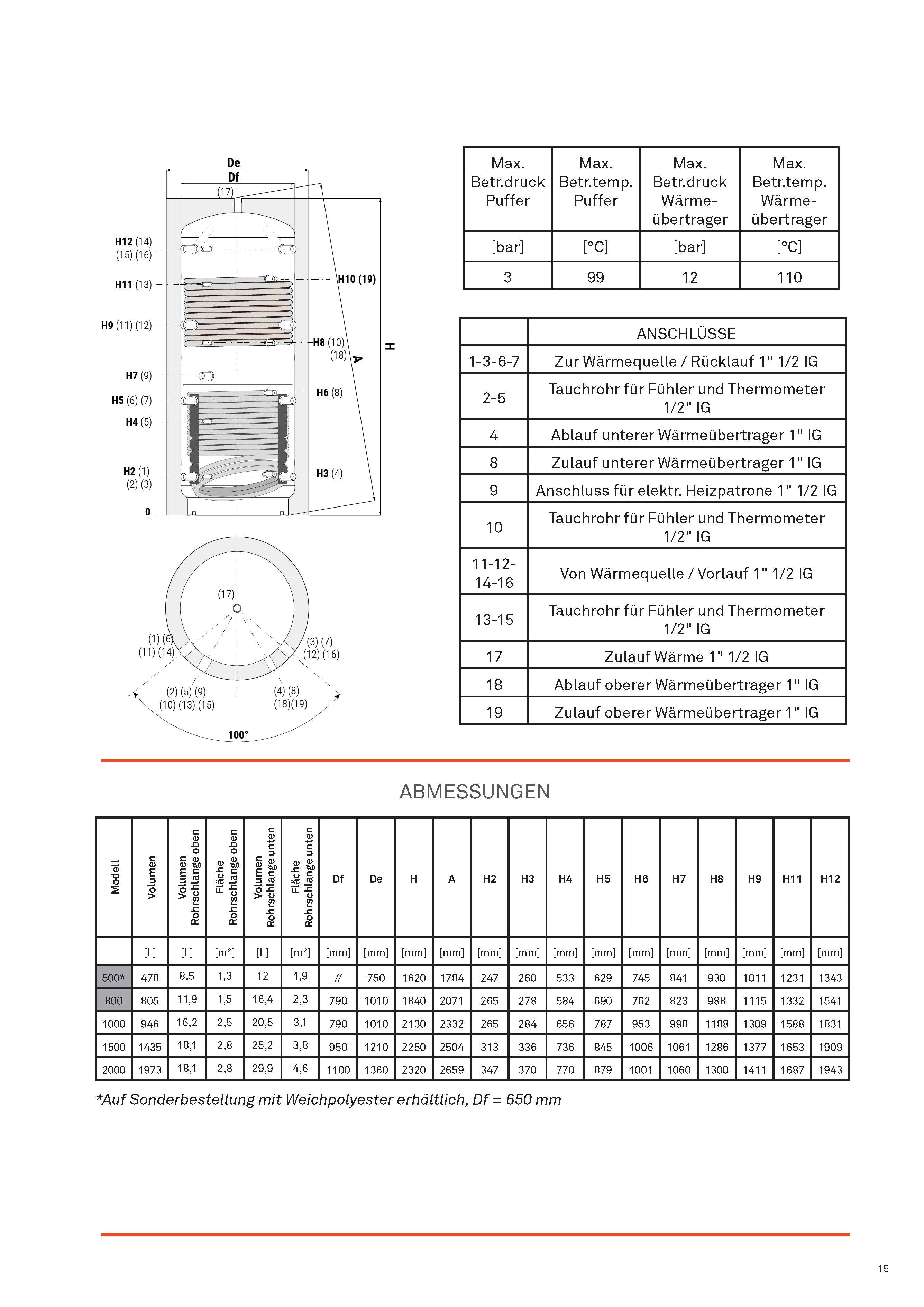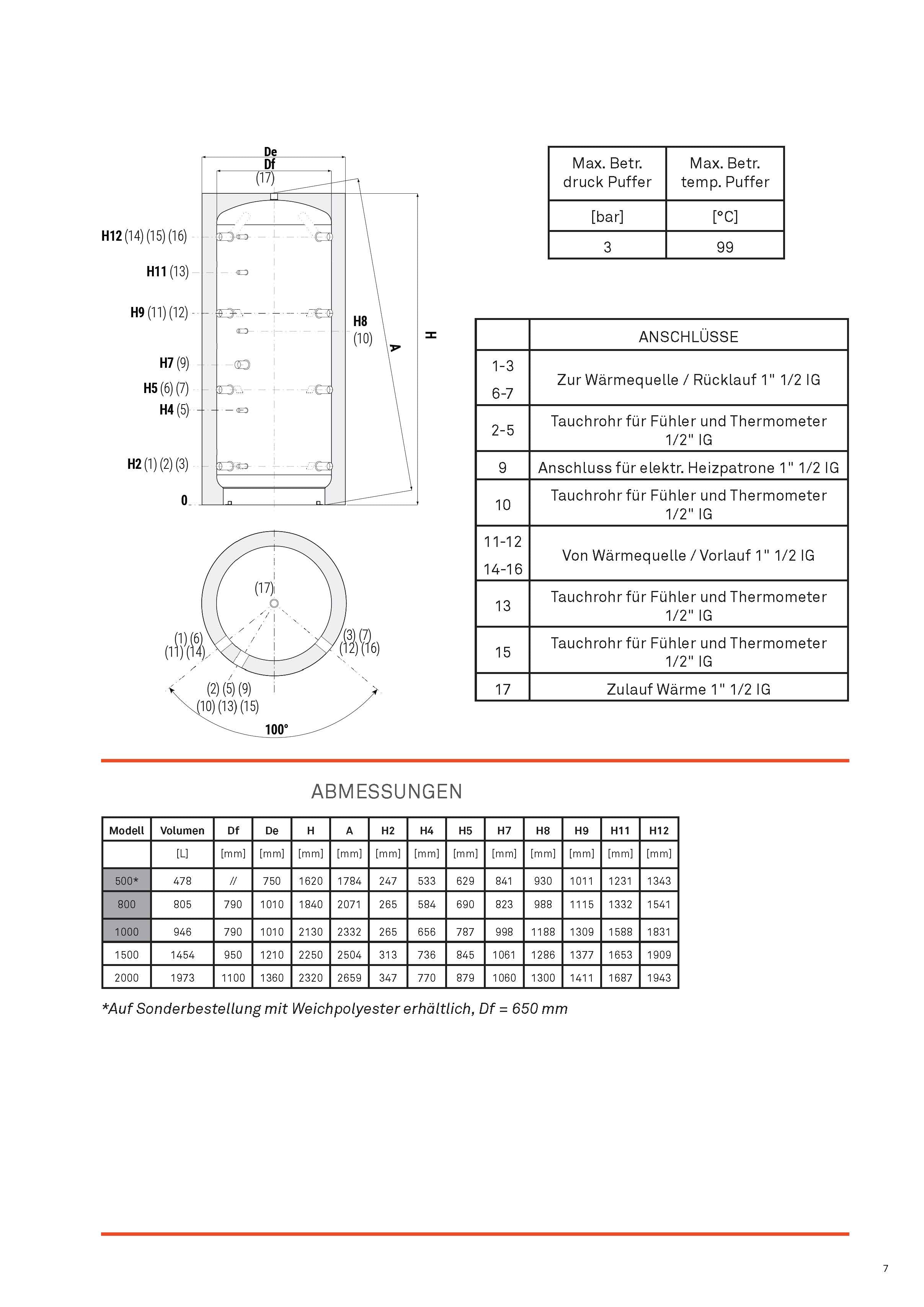 - Auf Wunsch mit Anschlussset (Kugelhähne, Tauchhülsen, Stopfen, Entlüftung) lieferbar.