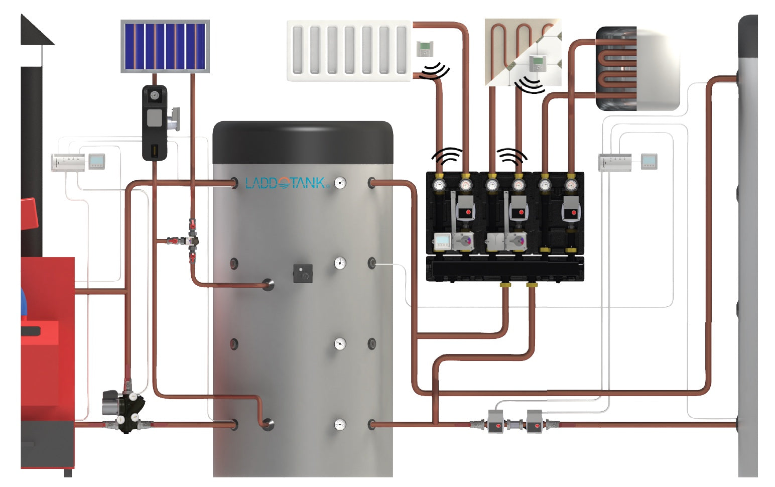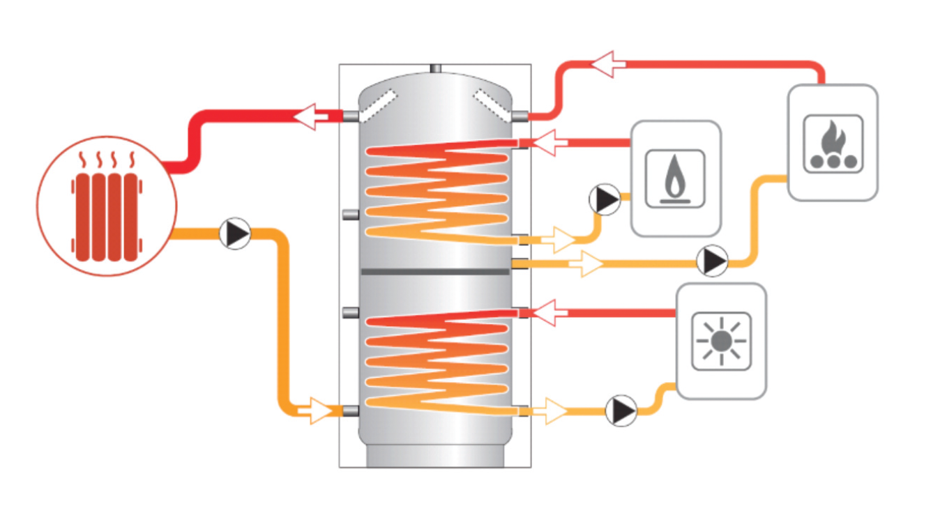 - Holz- und Pelletheizung: Pufferspeicher helfen, bei wechselnder Last den Kessel effizient arbeiten zu lassen und Takten zu vermeiden.