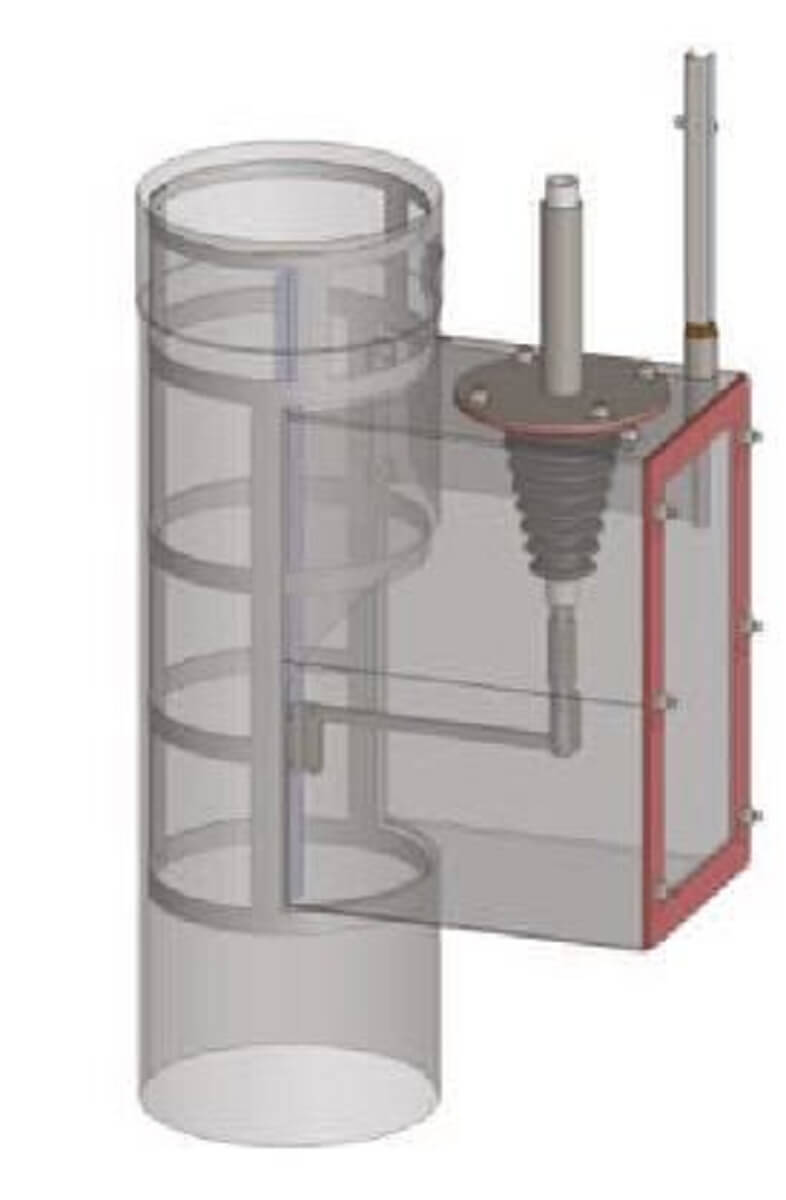 Der OekoTube-Inside mit halbautomatischer Reinigung besteht konstruktiv aus einem Abscheiderohr, einem Reinigungskorb, einer Isolatorkammer, einem Isolator und einer Elektrode. Mittels Betätiger wird der Reinigungskorb im Inneren des Abscheiderohrs manuell aktiviert. So werden die Abscheidefläche und die Elektrode vom Staub befreit. EMPFEHLUNG: Senkrecht montieren, mit einer Staubsammelschale unterhalb vom OekoTube-Inside mit halbautomatischer Reinigung.