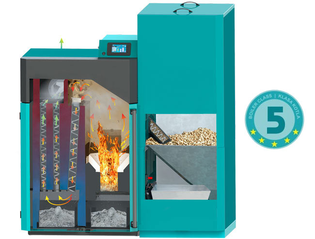 Dank dem automatischen Reinigungssystem für Brenner und Wärmetauscher, können hier auch Pellets der Qualität B verheizt werden.