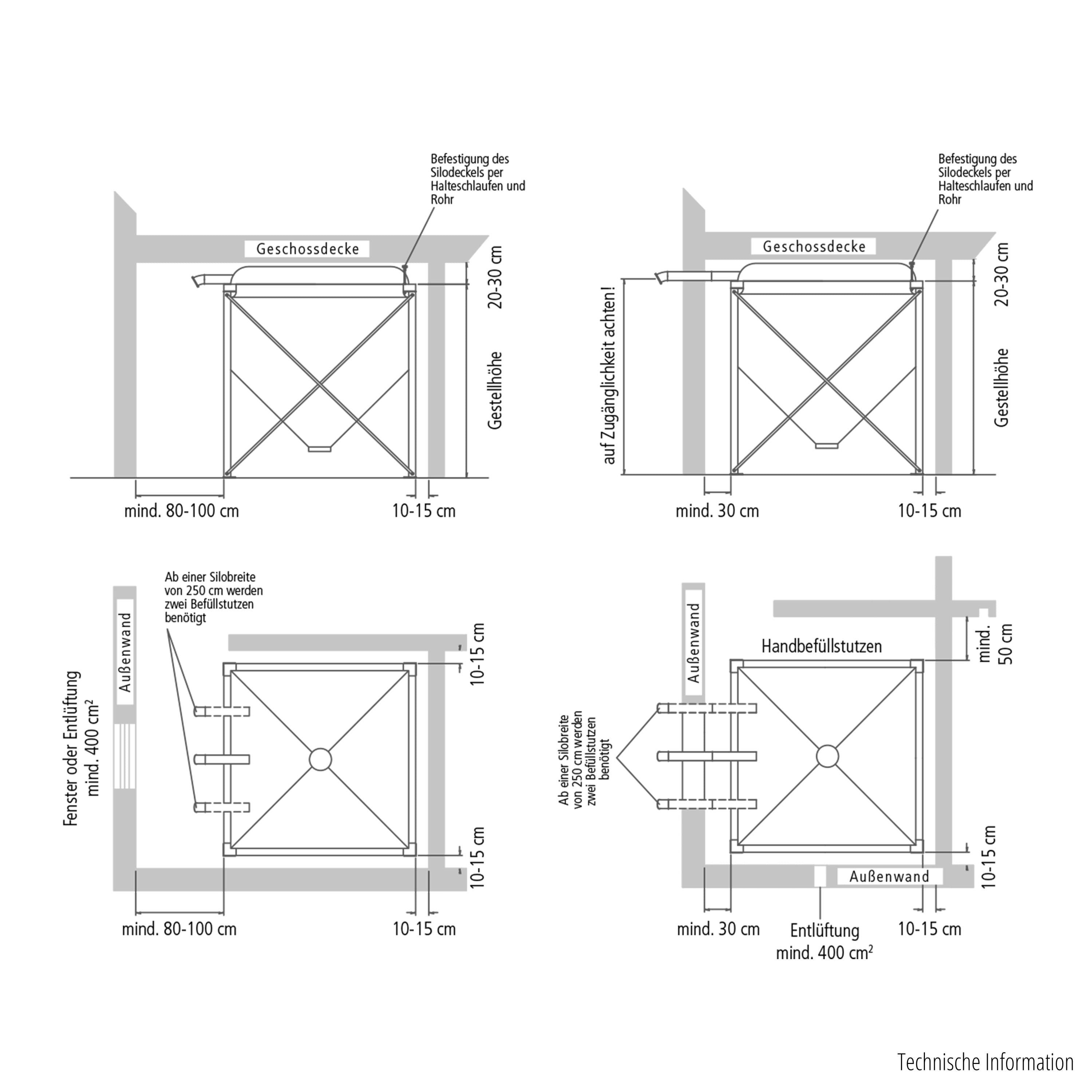 • Haltekonstruktion für Silodeckel (½“ Rohr muss bauseits gestellt werden)