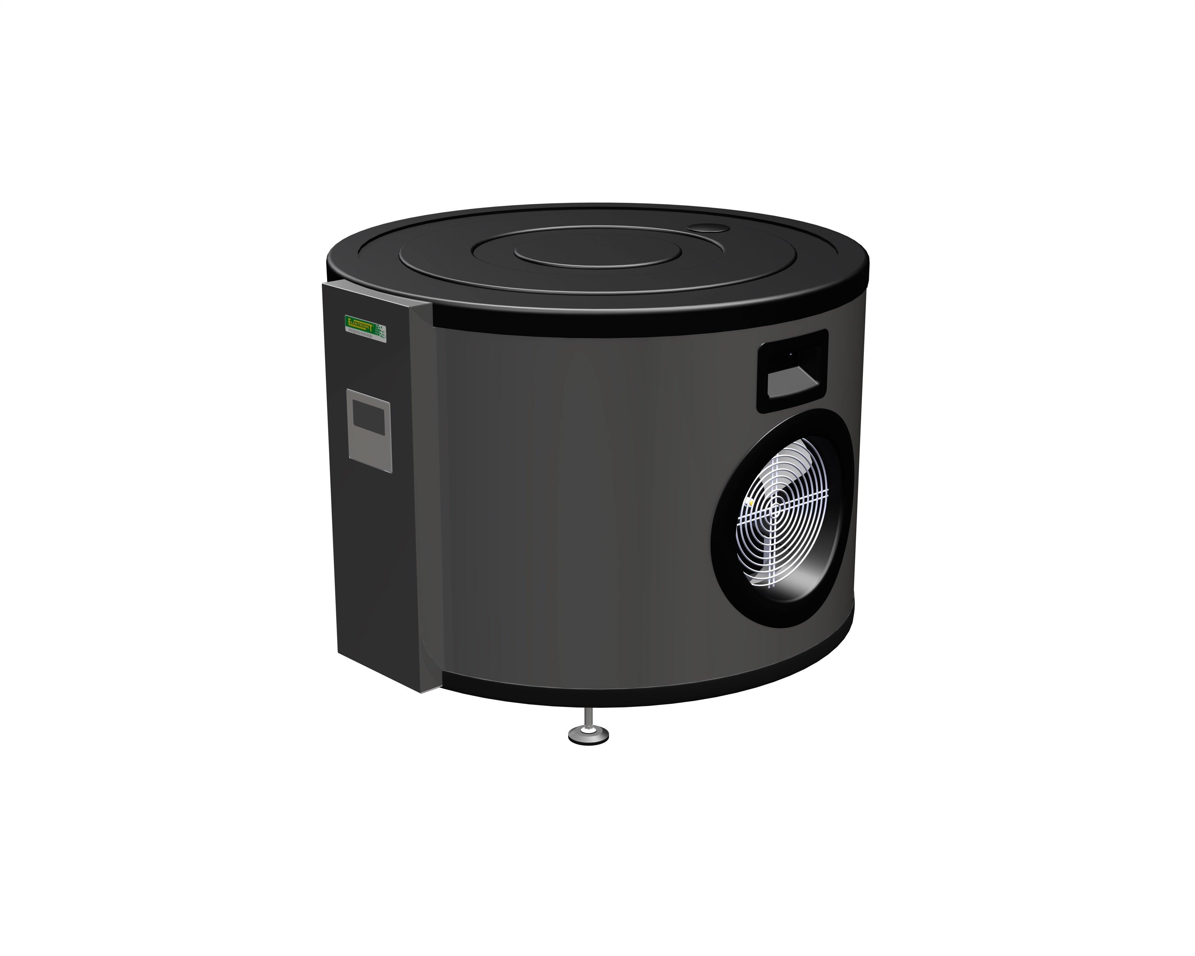 Das robuste Außengehäuse der Wärmepumpe besteht aus pulverbeschichtetem Blech, während die Abdeckung aus Kunststoff gefertigt ist. Durch den hermetisch geschlossenen Kältemittelkreislauf ist eine sichere und zuverlässige Leistung gewährleistet.