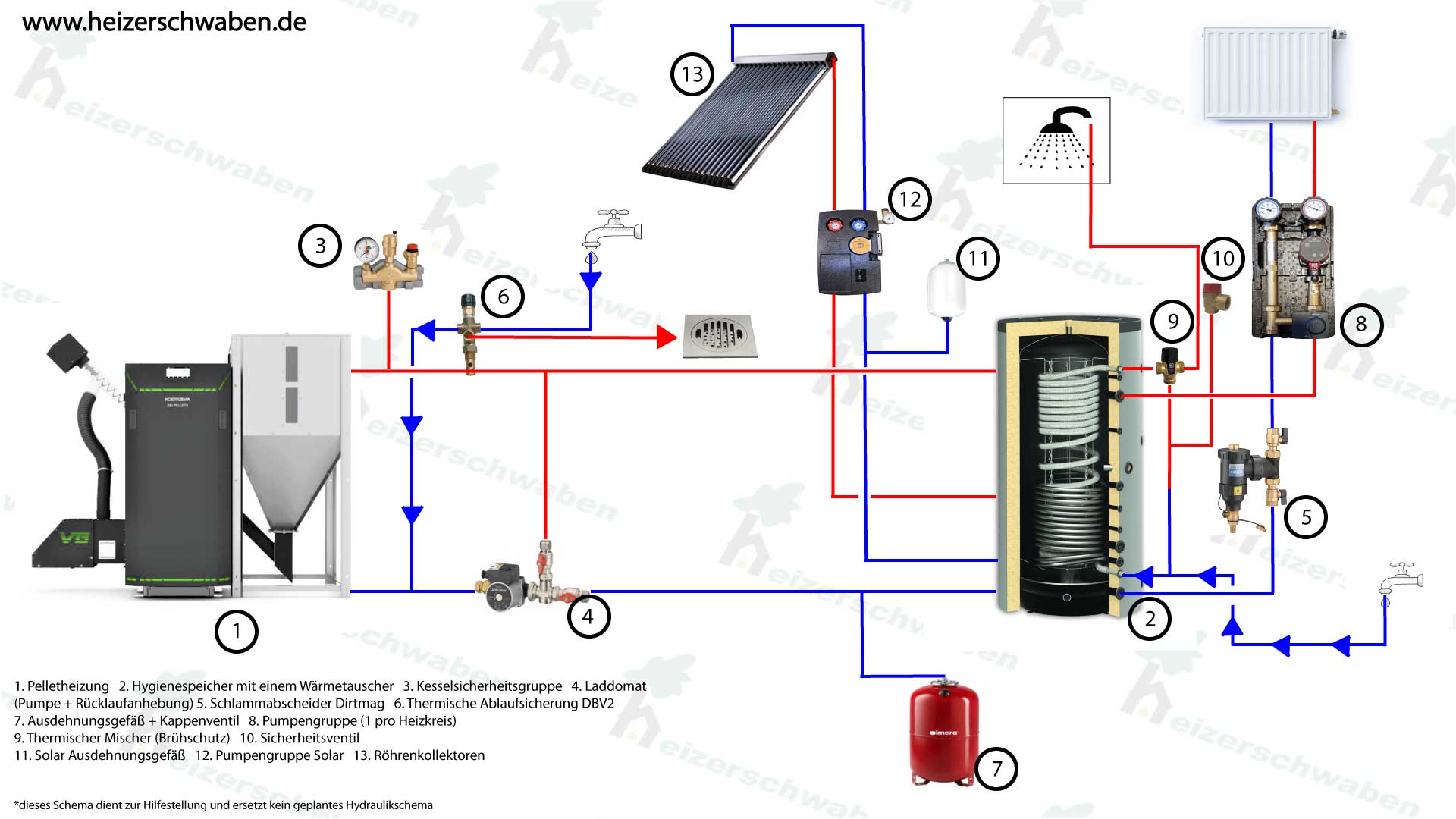 Lieferumfang zuzüglich zum Lieferumfang der Pelletheizung